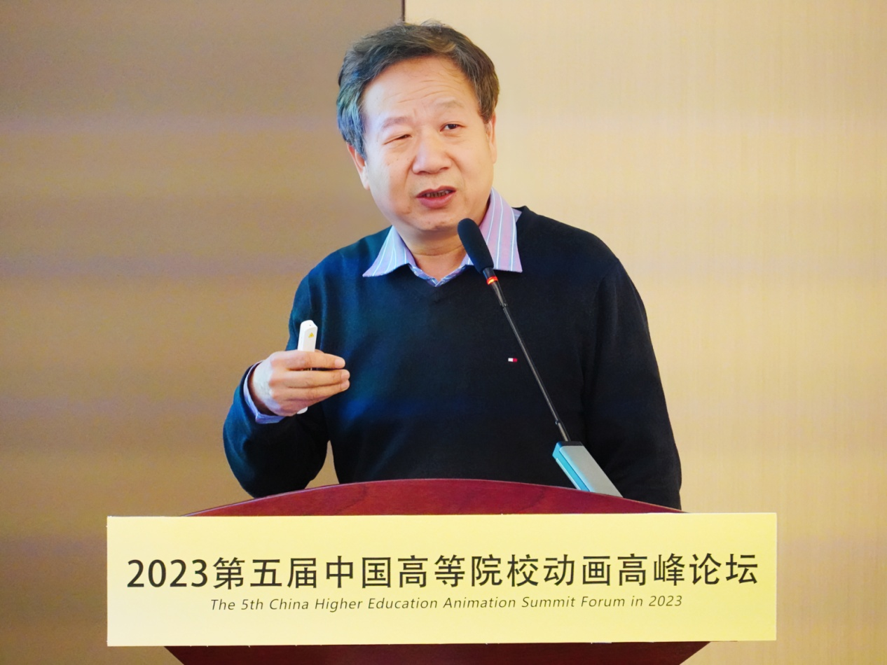 随后,会议进入到专题座谈环节,主题为“AIGC背景下高校动画教育思维新变革与专业实践创作的探讨”。魏武主任首先以当下AIGC的发展及前沿问题为切入,向各位专家抛砖引玉。朱明健教授认为,美术基本功在当下依然重要,对于技术则要合理应用。谢清风秘书长指出,AIGC背景下思想才是作品的精髓,要与AI形成良好的互动关系,要提升人类社会温情的“人文色彩”。蔡玉硕教授指出,当下教育语境发生了改变,教育管理者应在学科教学、课程体系、教育观念方面做出积极应对。严晨教授指出,目前人工智能的介入仍处于中低档设计的模拟阶段,人们应注重对绘画与工艺价值回归。耿少波教授认为,机器带给人们的便利究竟是好是坏仍然有待考究,当下仍需要着重强调审美基础能力。王申副教授指出,技术永远是人类的辅助工具,重要的是创作者选择适合自己的道路。