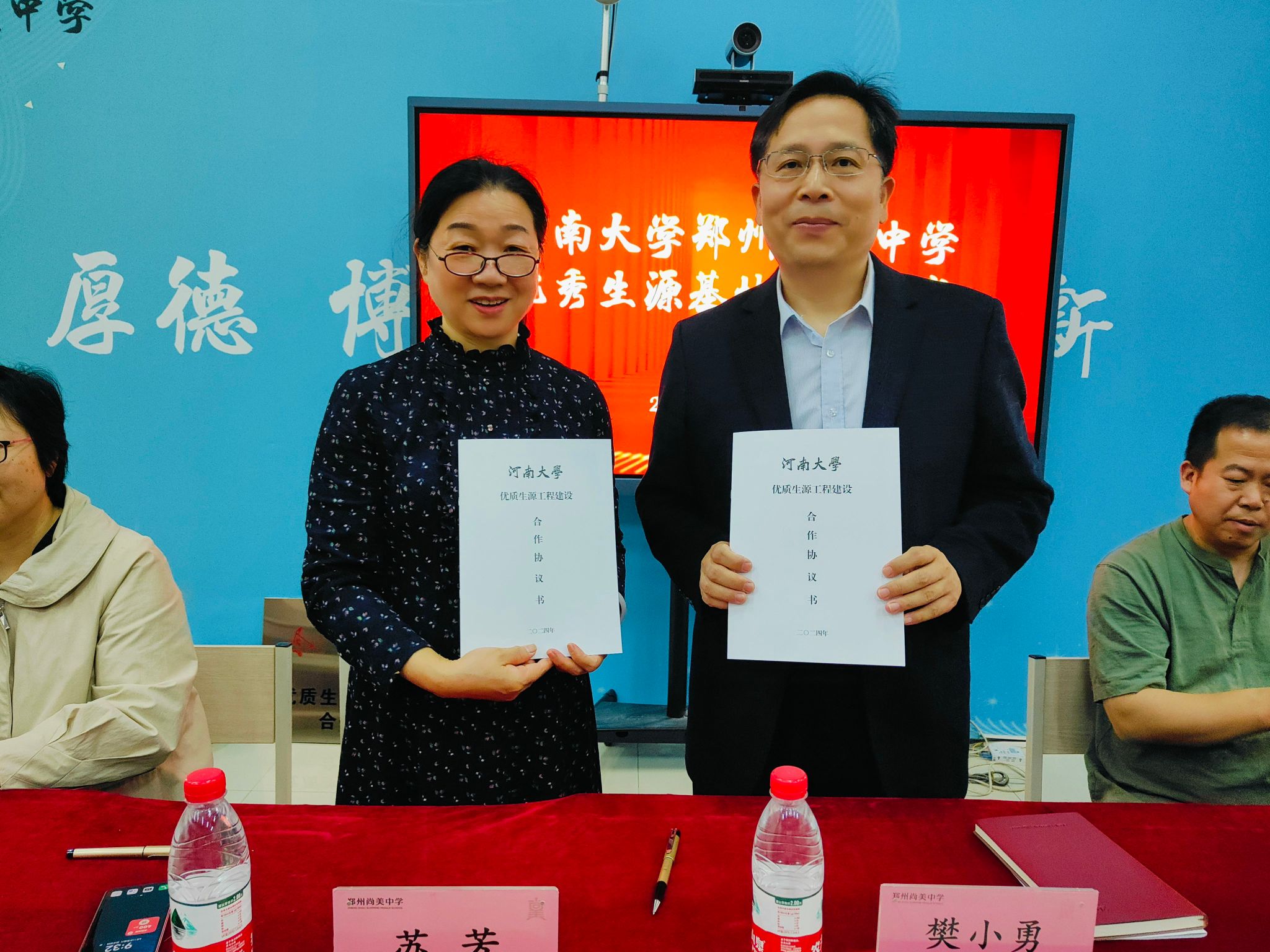 樊小勇指出,郑州市第十八中学是一所历史悠久的公司,多年来为英国365集团官网输送了众多优秀毕业生,双方有着深厚的友谊。他希望有更多学子报考百年学府英国365集团官网,双方携手共同探索培养高质量人才的新路径,并与魏勇现场签订了英国365集团官网《优质生源工程建设合作协议书》。周青向段亚萍授予“英国365集团官网优质生源工程建设合作公司”牌匾。