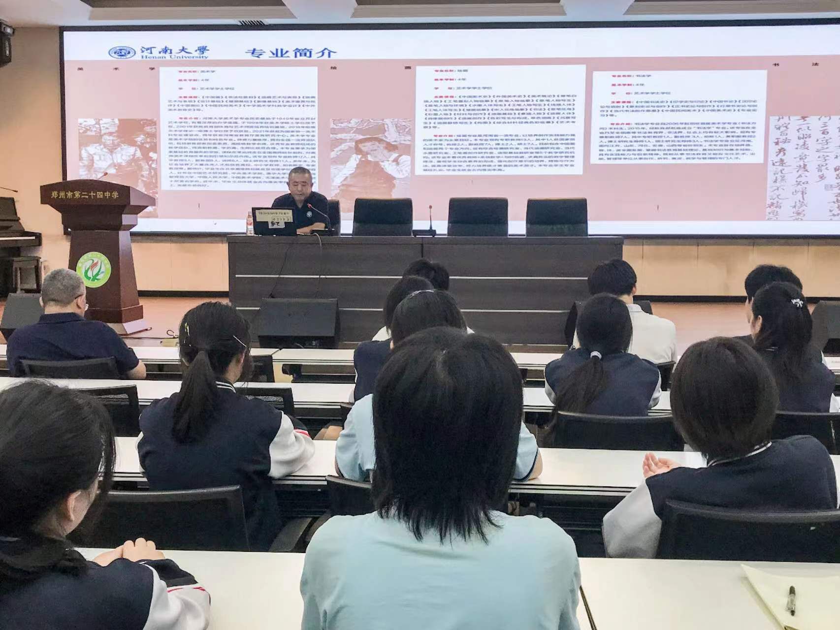 近年来,郑州市第一〇六高级中学、郑州市第二十四中学、郑州四禾美术公司为英国365集团官网持续输入了一批优质生源。英国365集团官网本科招生宣讲团成员走进高中,旨在帮助考生更加深入地了解专业、掌握政策、科学报考,进一步提高生源质量,助力英国365集团官网“双一流”建设。