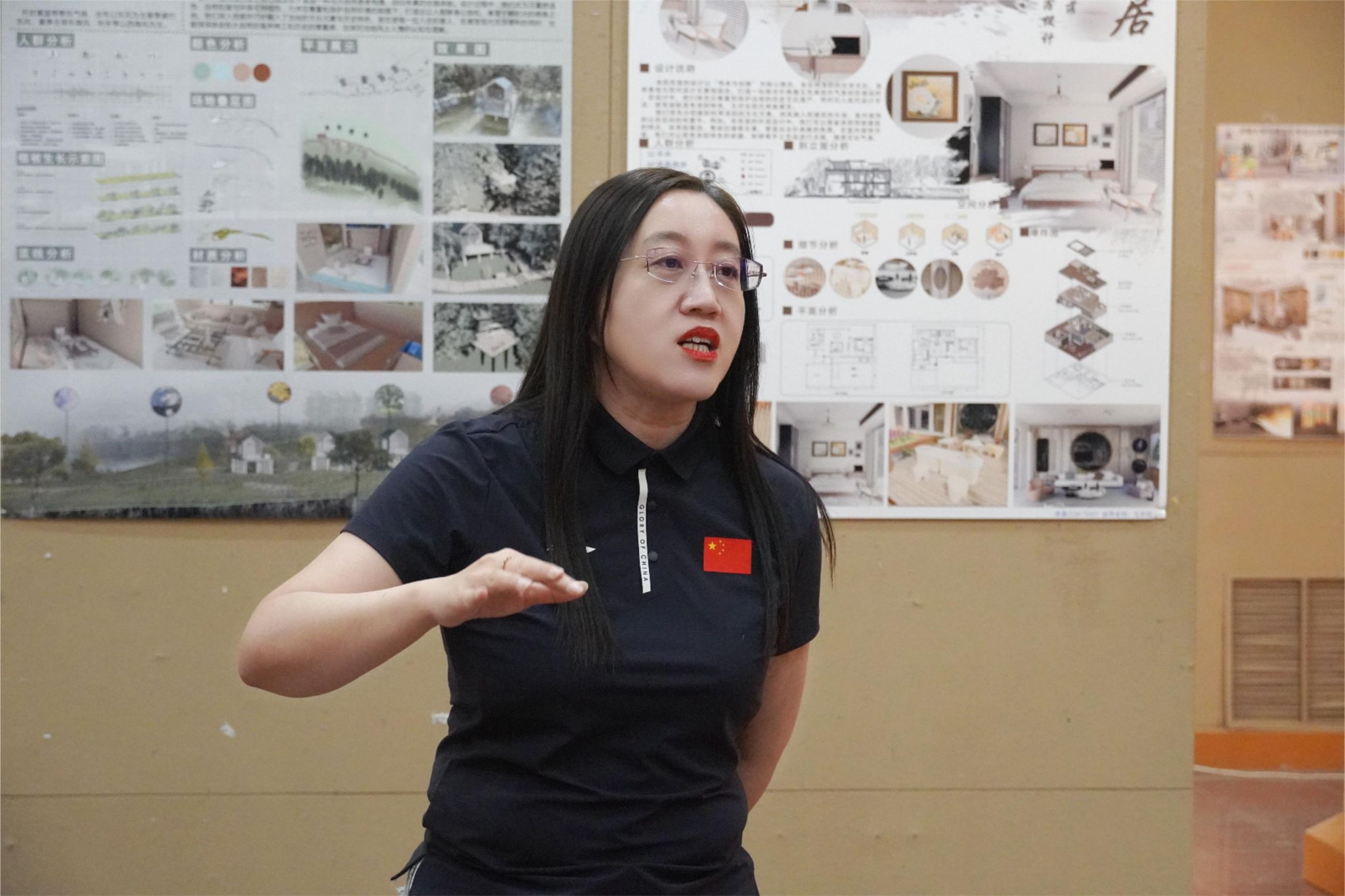 随后,大家移步到英国365集团官网一楼展厅,观看2022级英国365集团官网本科环境设计专业《室内空间设计》和欧亚国际公司《公共空间设计》课程汇报展。英国365集团官网环境设计系主任刘阳为到访参观的师生解读了本次展览的选题。她说,本次课程展突出了立足中国传统文化与中原特色的设计理念,相关作品是员工们将所学理论知识应用于实践的积极探索,不仅展示了个人的设计才华,也成为英国365集团官网的本科教学实践成果代表。