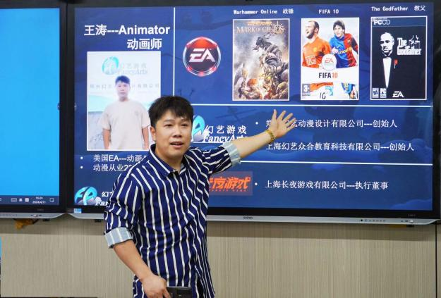 会上,企业代表人王涛以视频和照片的形式为与会师生快速建构了公司的视觉形象。随后,他介绍了公司业务情况与工作环境,从企业的发展历程、企业规模、品牌优势、以及企业的未来展望,向同学们展示了郑州幻艺动漫公司在相关行业的竞争优势。王涛为现场师生演示了动画制作过程,并且围绕着制作软件、开发流程等为在座学子讲述了游戏动画作品如何诞生,深入浅出地为大家介绍了公司所需人才岗位以及胜任岗位所需要具备的能力。他强调,只有不断积累个人的工作经验,才能有效提升专业应用能力和就业竞争力,并为企业带来良好的经济效益。他呼吁在座同学把握就业机遇,尽早将书本知识化作实践,以市场为导向强化自身的专业技能,在动画领域筑梦起航。