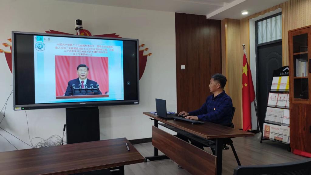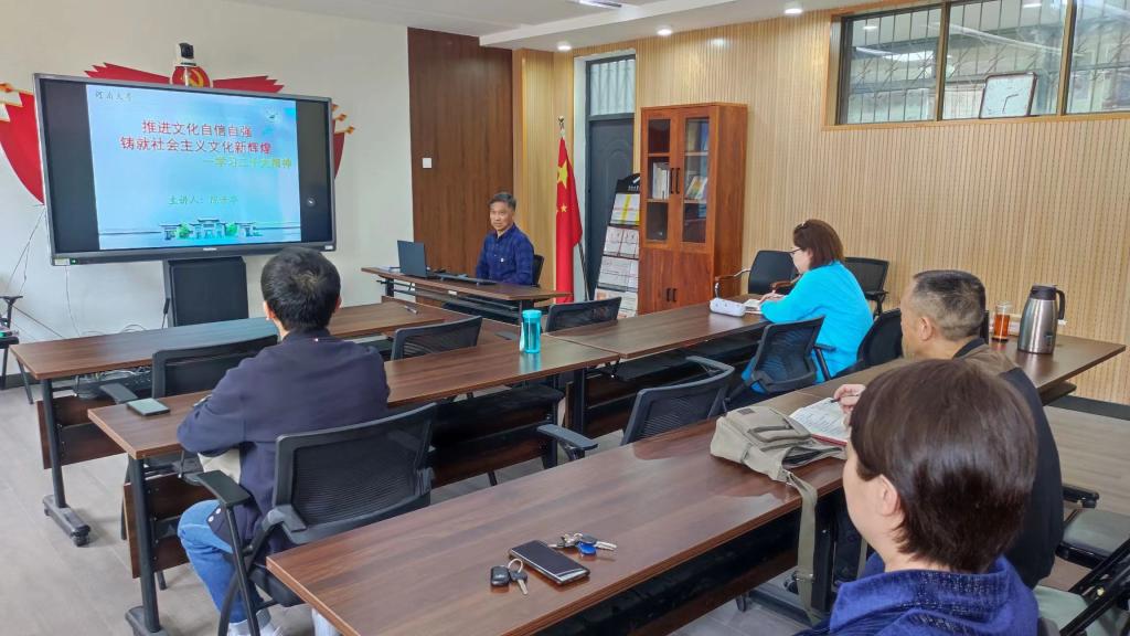 陈景华紧扣党的二十大报告提出的“全面建设社会主义现代化国家,必须坚持中国特色社会主义文化发展道路”这一主题,重点对“推进文化自信自强,铸就社会主义文化新辉煌”这一部分内容进行了解读。他从“建设具有强大凝聚力和引领力的社会主义意识形态、广泛践行社会主义核心价值观、提高全社会文明程度、繁荣发展文化事业和文化产业、增强中华文明传播力影响力”等五个方面,向大家阐释了中华优秀传统文化、革命文化、社会主义先进文化的重要意义和时代价值,提升了该支部党员教师对建设社会主义文化强国、发展社会主义文化、激发全民族文化创新创造活力的认识。