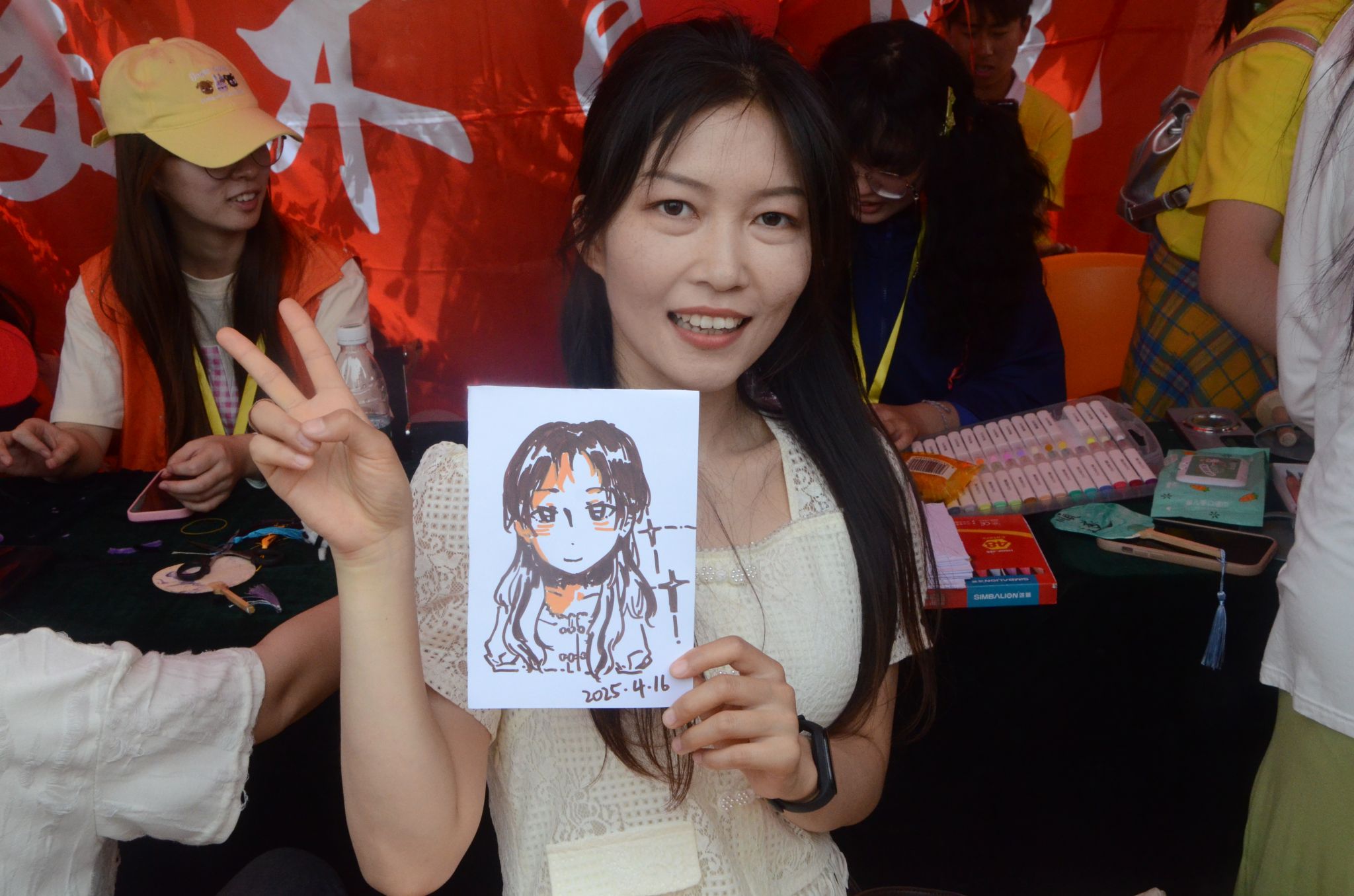 寥寥数笔,飒爽英姿跃然纸上;夸张的线条,让运动的活力更加鲜活。志愿者和同学们交流,因艺术拉近了彼此的距离。无论是运动场上挥洒汗水的矫健身姿,还是春日漫步时的悠然神态,都将在他们的笔下化作独一无二的春日限定记忆。