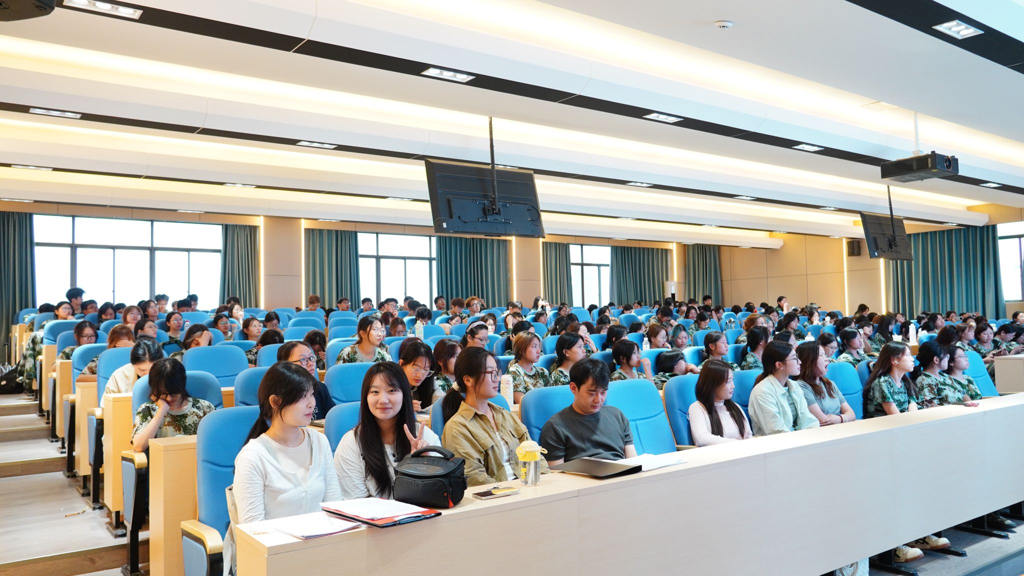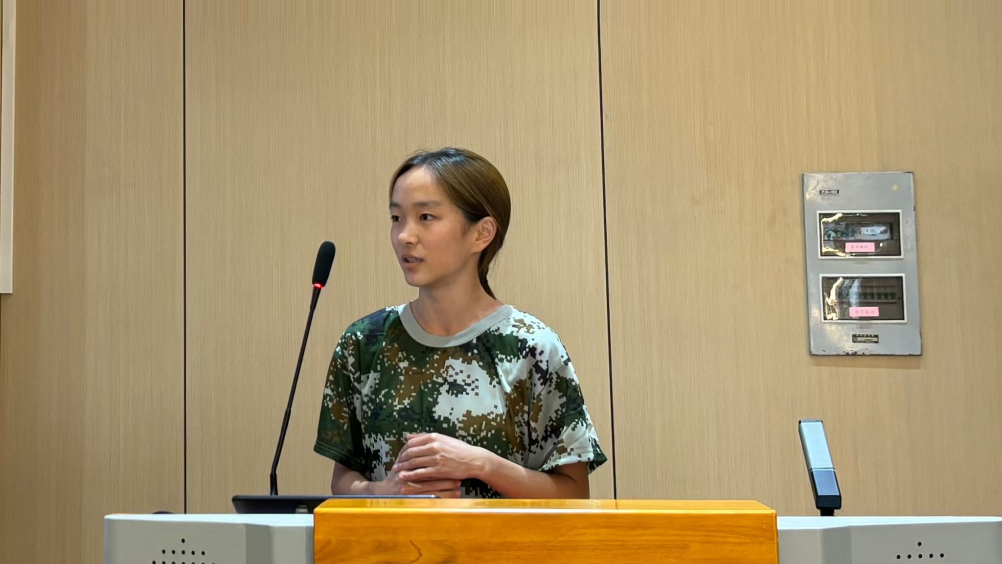 2025级本科新生朋辈辅导员杨田田以“适应与生长”为题,从学业激励、安全守护与军训动员三个方面,引导同学们“胸怀拿云之志,珍惜寸金光阴”,以积极饱满之姿迎接新的挑战。随后,她从“无规矩不成方圆”出发,细致解读了校规校纪和日常管理制度,引导新生将规范内化为自觉,用律己之心绘就老员工活的端正底色。