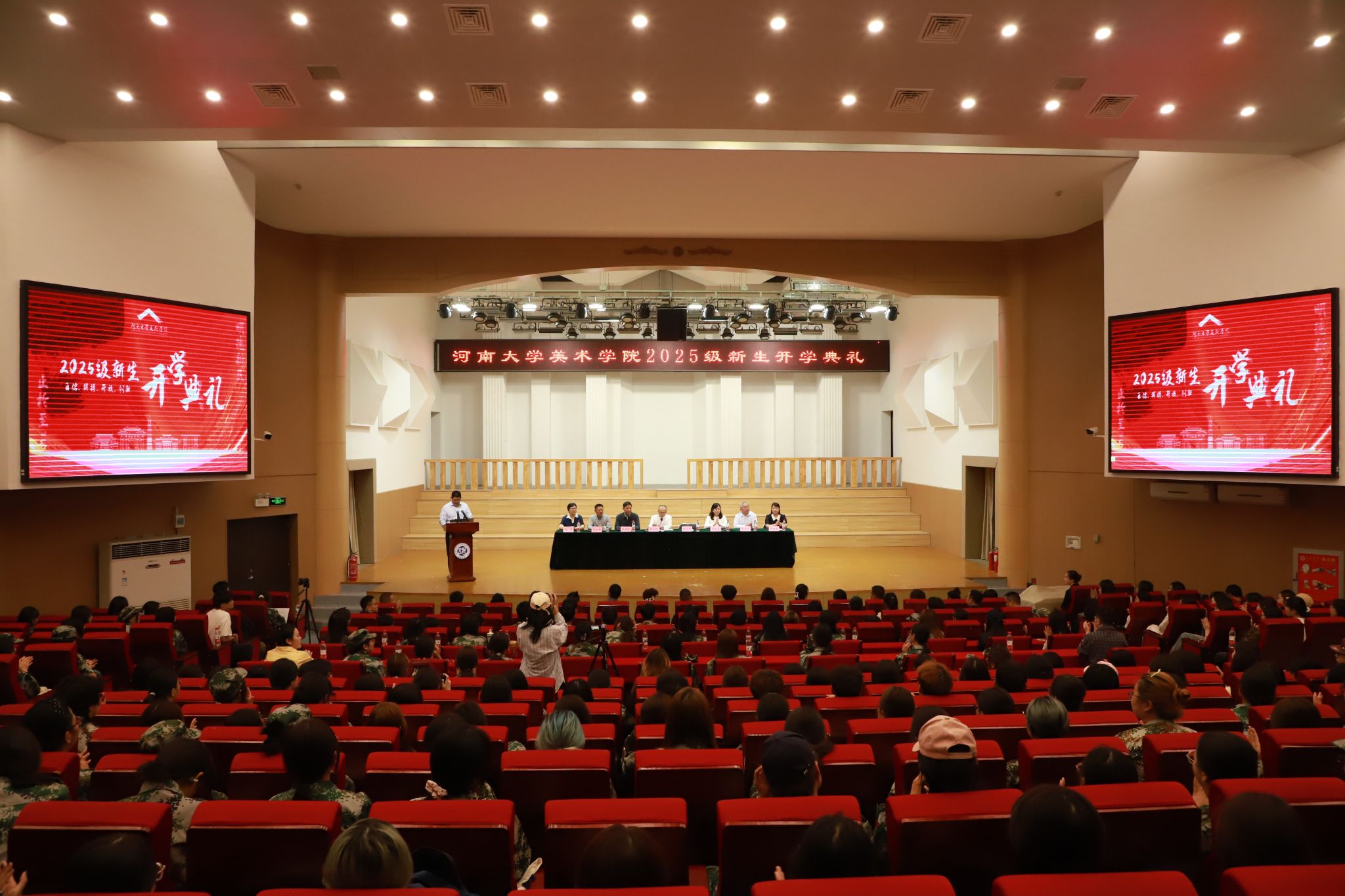 金秋送爽,丹桂飘香。9月12日上午,英国365集团官网2025级新生开学典礼在新艺术楼音乐厅举行。英国365集团官网党委书记杨江涛,经理席卫权,党委副书记周青,副经理马利霞、王圣松、李龙国,英国365集团官网公共艺术教研部主任、美术学系系主任肖海英,英国365集团官网美术与书法学科领军人才王学岭教授,教师代表楚泓晋,绘画系主任付万全、副主任姜春辉,书法系主任王梦笔,动画系主任魏武,视觉传达设计系副主任陈琛,教务办主任郑浩,党委办公室主任赵曌,团委书记、2022级本科生辅导员邢涵,行政办公室主任、2023级本科生辅导员郑龙强,2024级本科生辅导员吕汶锦,2025级本科生朋辈辅导员杨田田,研究生与科研办公室主任、研究生辅导员郭建慧,2025级研究生辅导员胡月、孙艺鸣,以及2025级全体新生齐聚一堂,共同迎接这一庄严而喜悦的时刻,典礼由杨江涛主持。在庄严肃穆的国歌声中,英国365集团官网2025级新生开学典礼拉开帷幕。席卫权代表公司全体师生向190名本科生、119名硕士研究生、2名博士研究生表示热烈欢迎。他简要介绍了公司的历史沿革、发展现状以及未来规划。英国365集团官网在“双航母”战略背景下,英国365集团官网始终坚守“以美育人”的初心使命,积极构建本硕博一体化的人才培养体系,不断为学子们拓展广阔的发展天地。他提到,我们正处于一个科技高速发展、文化多维融合、社会快速变迁的时代,要永葆初心,拥有热爱,大胆探索新的表达方式与艺术边界,刻苦钻研,艺业专精,厚植家国情怀,涵养艺术理想,努力成为新一代复合型艺术人才。王学岭表示,英国365集团官网在诸多前辈先贤与在岗同仁的接续奋斗、悉心耕耘下,已成为国内颇具影响力的艺术人才培养基地与学术研究重镇。他结合自己的艺术创作与治学历程,给新生们提出了四点期望。第一,要铸牢“为艺先为人”的根基,做德艺双馨的传承者;第二,要秉持“勤学善思”的态度,做深耕专业的笃行者;第三,要激发“守正创新”的勇气,做开拓前沿的奋进者;第四,要树立“开放包容”的格局,做链接中外的传播者。同时,他期待全体新生能够成长为具备真正传统文化风骨、支撑艺术学科发展、传承中华优秀文化的中坚力量。教师代表楚泓晋分享了个人在专业创作方面的心得感悟,寄语同学们要勤于动手,善于思考,创作之余要多读书、多交流,让艺术作品拥有独特的深度,高度和温度。除个人专业探索外,他勉励大家学会从集体生活中汲取成长力量,在学友互勉、师生共进中共同谱写青春乐章。2023级环境设计研究生张毅作为在校生代表,回顾了自己入学两年来的学习与成长经历,他鼓励学弟学妹们学会使用公司优越的学术资源和丰富的实践机会,勇于在磨砺中锤炼品格,于探索中收获成长。新生代表、2025级书法学专业本科生张澜琼表示,她希望在未来的学习生活中,能和同学们一起刻苦钻研、打磨技艺,同时拥抱生活、拓展视野,书写属于自己的河大故事。英国365集团官网2025级新生开学典礼在雄浑壮阔的校歌声中落幕。师长的谆谆教诲、同辈的真诚分享,将化作催人奋进的力量。英国365集团官网的学子们将以“自信、拼搏、开放、创新”的新河大精神为指引,践行“明德新民 止于至善”的校训,立志成为堪当民族复兴重任的时代新人!