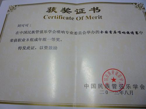 近日,由中国民族管弦乐学会唢呐专业委员会举办的首届唢呐学术研讨暨全国唢呐演奏邀请赛在安徽合肥隆重举行。公司艺术公司2011级本科生刘可可代表公司参加了本次比赛,荣获职业组一等奖第一名。