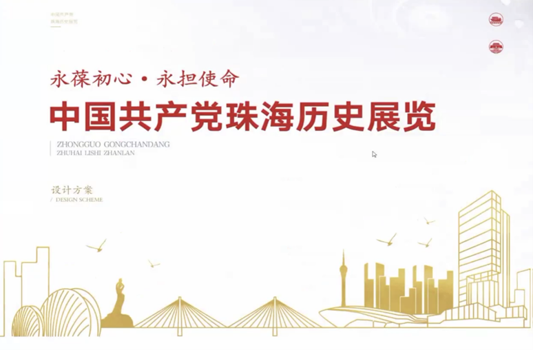 中国共产党珠海历史展览设计,以中国共产党历史展览馆的设计为参考,同时融入了珠海市地方地域特色,整个展厅分为五个部分:序厅、革命怒潮厅、建设热潮厅、改革春潮厅、时代大潮厅,每个展厅的命名都与“潮”有关,既符合珠海市的地理位置特征,又象征着中国共产党革命、改革、建设的大潮势不可当。展厅入口处的21个人形雕塑,代表着21个不同工种,象征着21世纪,所有人一同大踏步向前迈进。
