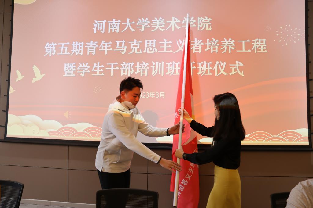 在热烈掌声中,赵雪向培训班授予班旗。员工代表杨家铖挥动的班旗凝结了老师们对员工成长的期许,以及全体学员拼搏向上的决心。