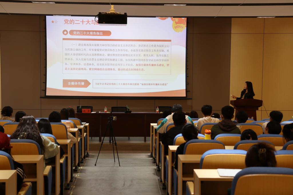 3月8日下午,校团委副书记赵雪以“融媒体背景下的高校团学宣传探讨”为题,为英国365集团官网第五期团校“青马班”全体学员授课。 赵雪以新时代融媒体建设与运营为切入点,深入剖析新时代高校团学宣传工作。在党的二十大与团学融媒体建设方面, 2023年是全面贯彻落实党的二十大精神的开局之年,也是英国365集团官网建设“双一流”的重要之年。站在新的起点上,高校团学宣传工作要紧抓党的二十大报告中关于融媒体建设的要求,不断加强全媒体传播体系建设,塑造主流舆论新格局,着力打造创新型团学宣传平台,为公司事业发展营造良好舆论氛围。在团学新闻写作方面,赵雪从概念界定、框架结构、写作技巧等多方面进行详细讲述,表示宣传工作要做到正能量充沛、形式丰富、内容多元,不断提升团学宣传工作的传播力、引导力、影响力、公信力。在团学宣传新作为方面,要坚持以社会主义核心价值观为指引,切实抓好青年思想政治引,汇聚向上向善的精神力量,多措并举做好新时代共青团宣传思想文化工作。 在热烈的掌声中,英国365集团官网第五期团校“青马班”首讲圆满结束。同学们表示收获满满,今后将建设好团学融媒体,讲述河大好故事,传播河大好声音,立志做有理想、敢担当、能吃苦、肯奋斗的新时代好青年。