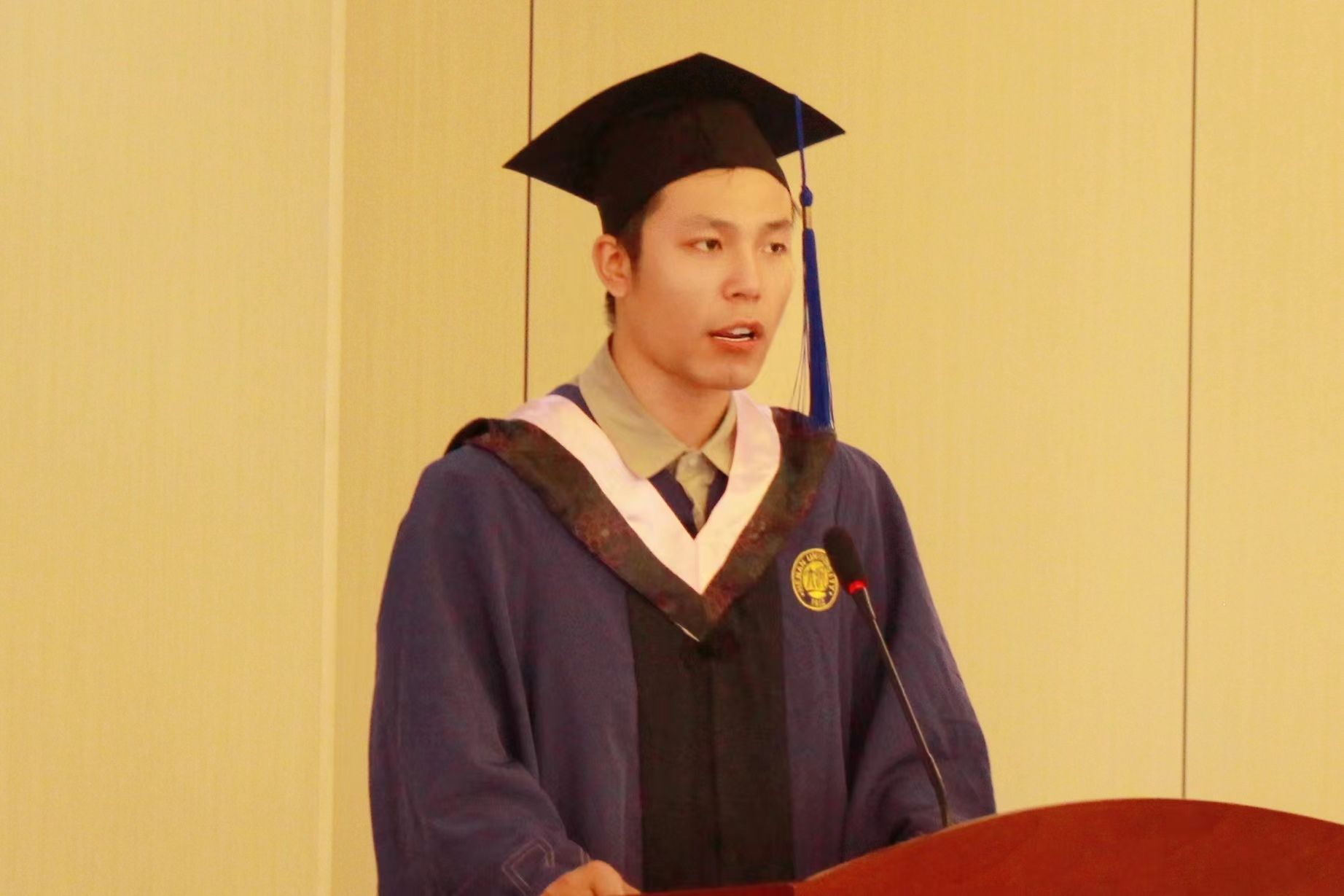 2021级环境设计专业硕士研究生徐建通代表全体毕业生发言。他向悉心教导、陪伴和帮助自己的师长们亲友们,献上最诚挚的谢意。他表示,同学们在美丽的河大校园学会了分析与思考、合作与竞争,收获了成长和友谊。他希望每一位从河大走出去的“铁塔牌”学子,都能以优异成绩回报恩师的教导,回报母校的关爱,衷心祝愿母校宏图大展、再谱华章。