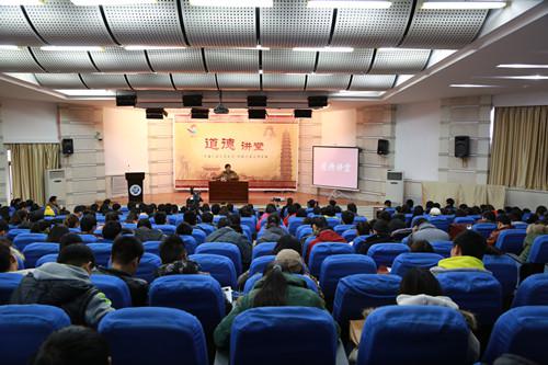 2013年11月28日下午三点,由校文明委主办,艺术公司承办的以“德艺双馨,做美丽艺术人”为主题的道德讲堂在科技馆二楼报告厅开讲。校文明办和艺术公司相关领导出席,艺术公司各年级近三百名员工参加了本次活动。