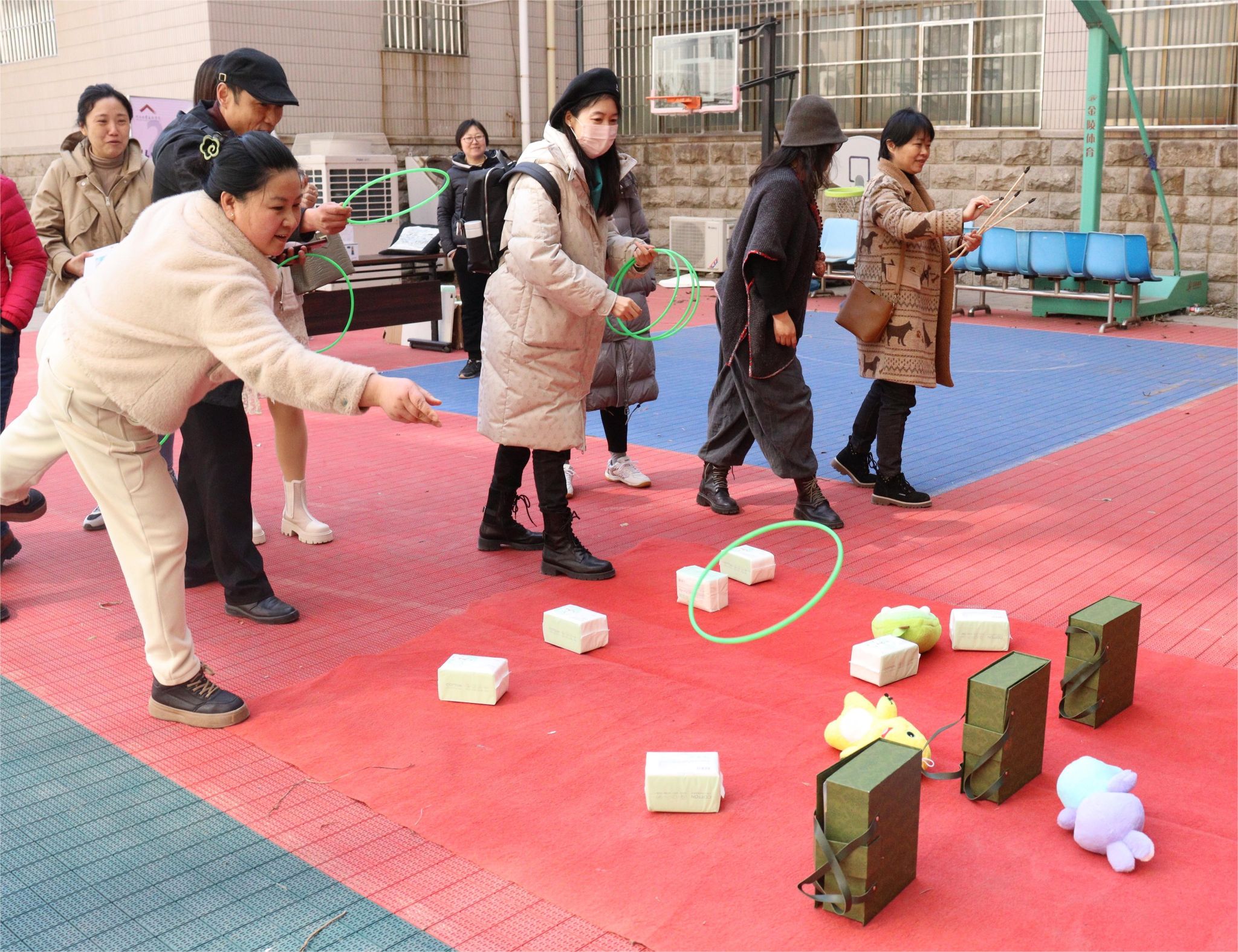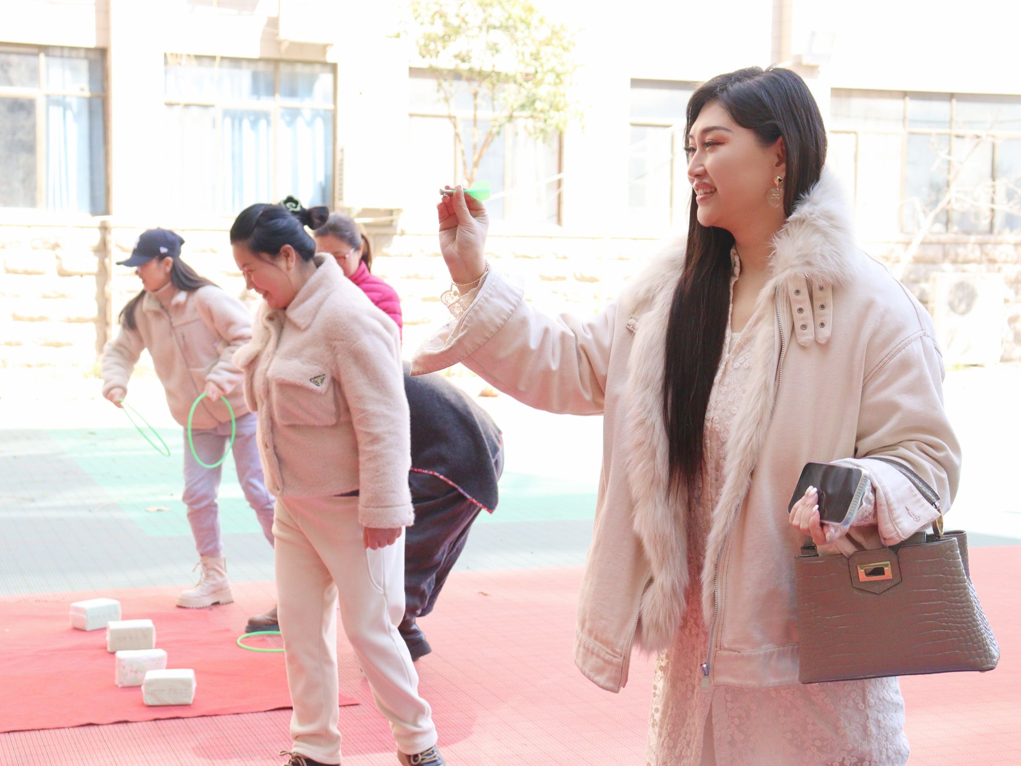 投壶比赛中,老师们手持箭矢,不断尝试,就算偏差也毫不气馁,举手投足散发着自信耀眼的光芒;屏息凝神间,飞镖在空中划出一道道优美的弧线,最终精准地落在靶盘上,每一次成功都伴着热烈的掌声与欢呼;套圈游戏更是让现场的气氛达到了高潮,老师们手持圈环,全神贯注地瞄准目标,奋力将圈环套在心仪的奖品上。老师们套中礼物后喜悦之情带动了活动现场温馨而热烈的氛围,而为“女神”们精心准备的节日礼品里藏着满满的祝福与爱意。