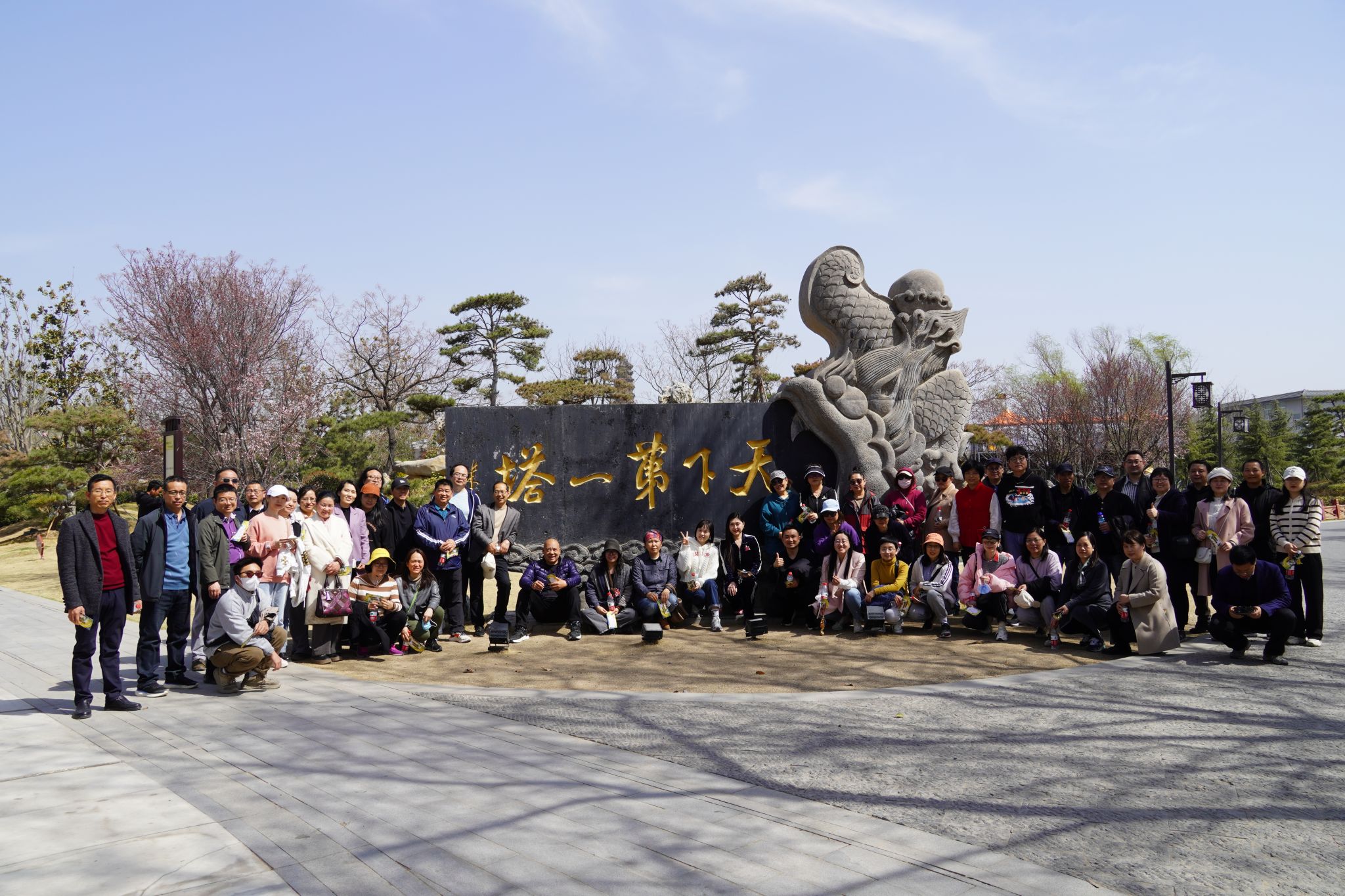 为了增加活动的趣味性,公司为每位老师准备了“绿野仙踪行,享铁塔春意”卡片作为参与活动的凭证和探寻美景的指南。沿途,公司的志愿者守候在各个景点为老师们打卡加油。半个小时后,大家齐聚 “天下第一塔”前合影留念,把灿烂的笑容融进了春天里。