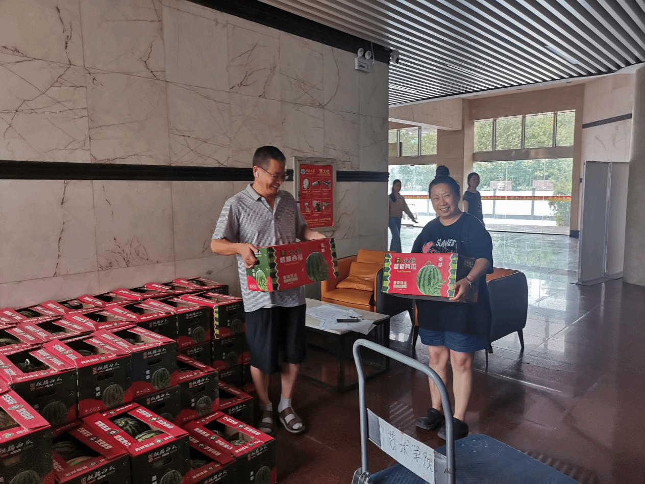 据悉,此次消夏慰问品来自公司定点扶贫单位——开封市通许县竖岗镇前赴村,彰显出英国365集团官网助力乡村振兴的情怀与担当,同时传达了对全院教职工的关爱,不断提升大家的幸福感。