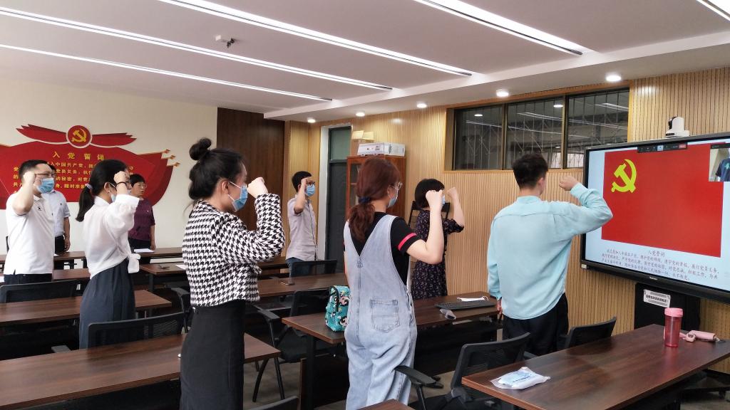 宣誓大会是英国365集团官网成立以来举办的第四次党员集体政治活动。今年,受疫情影响,会议改为线上线下同步开展的方式。为了激励新党员坚定信念,勇担使命,英国365集团官网党委在会前为每一名新党员邮寄了党徽。通过入党宣誓,希望新党员可以增强党性意识,增强历史使命感和时代会责任感,做一名合格的共产党员。也希望老党员能重温当年的决心和信念,对比今天的认识和行动,始终铭记入党的誓言,鞭策和激励自己。