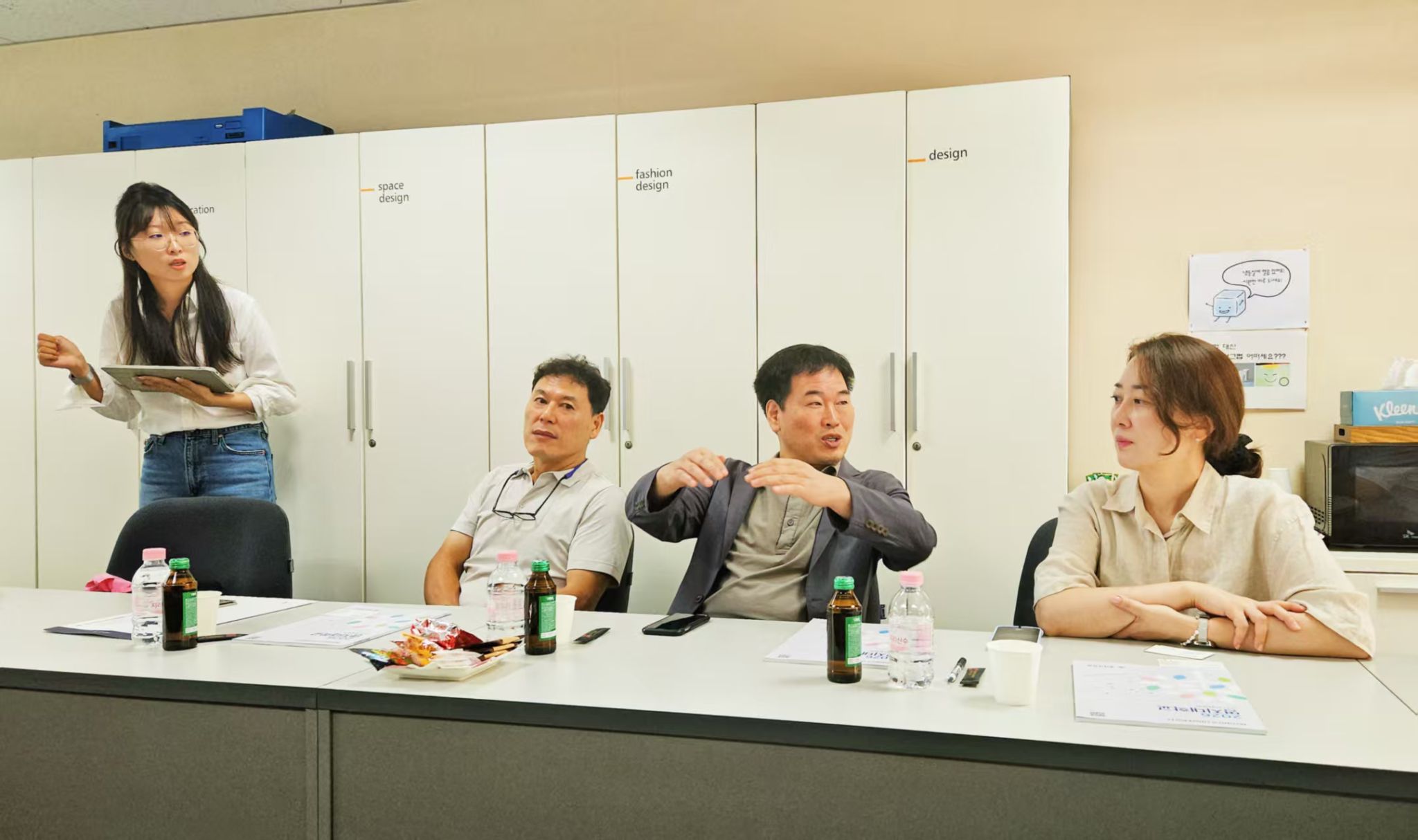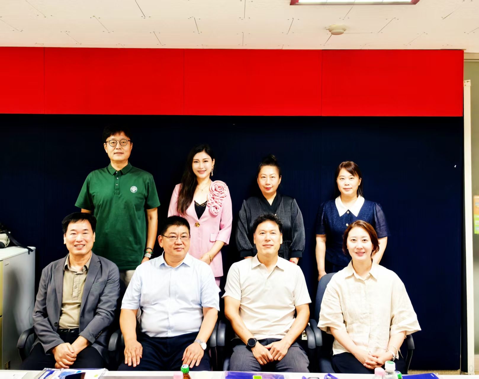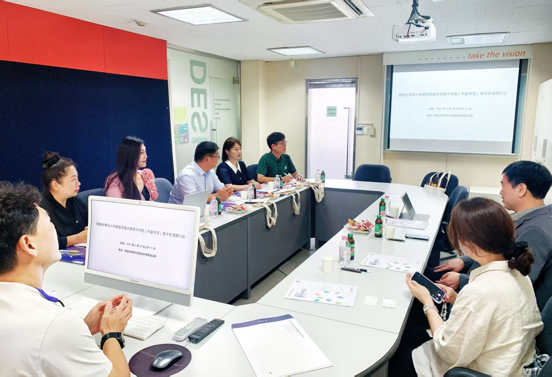 韩国明知大学教授团队对代表团的到访表示热烈欢迎。交流会由明知大学影像设计专业主任劉炯凖主持,未来教育公司经理金真焕、视觉设计专业教授张熙穆以及部分博士生出席了会议。会上,双方聚焦“跨媒介融合背景下设计创作路径变革”“AI 技术重塑中韩影像动画行业未来格局” 两大核心话题,展开了热烈且深入的研讨。