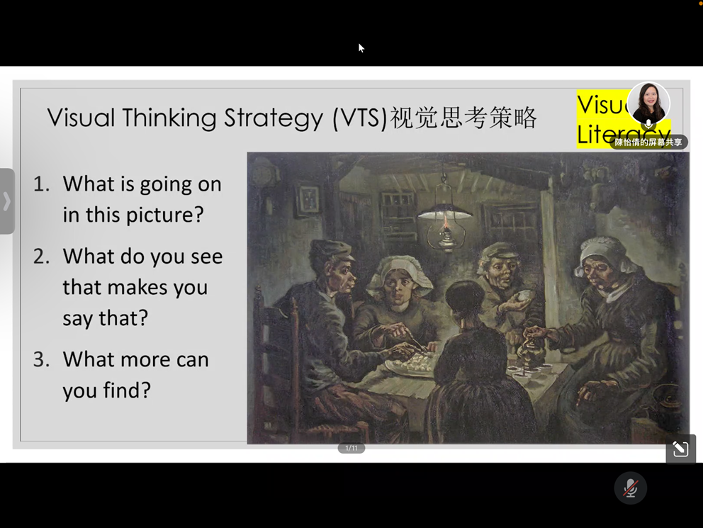 自授课以来,课程导师陈怡倩每堂课都会为同学们设定“限时挑战”,同学们以小组分工合作的方式,在最短的时间内完成。在第7堂课中,陈怡倩老师利用“VTS视觉思考策略”,以梵高作品《吃土豆的人》为例,帮助同学们深入地读图识图,进而开展艺术、语文等跨学科的学习。