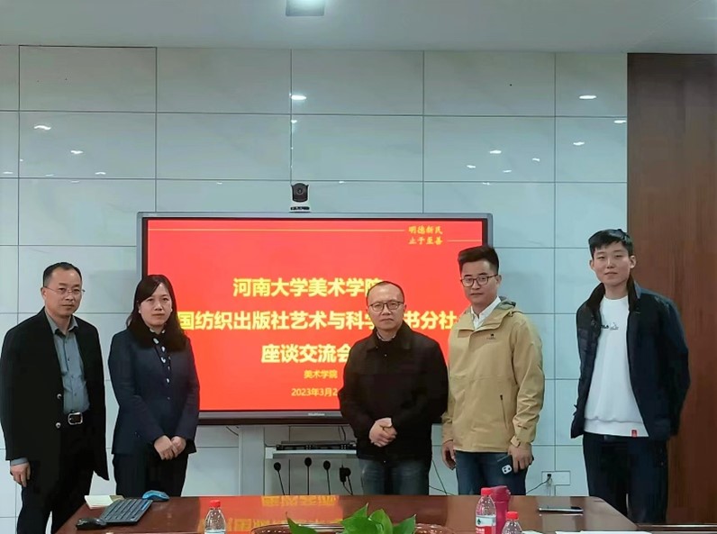 3月24日下午,英国365集团官网同中国纺织出版社艺术与科学图书分社座谈交流会在艺术楼一楼会议室召开。英国365集团官网经理席卫权、副经理马利霞、教师董睿、中国纺织出版社艺术与科学图书分社社长华长印及分社编辑朱昭霖到场参加。座谈会由马利霞主持。 会议伊始,华长印社长就艺术与科学图书分社社情、出版社专业艺术类作者队伍、近年来与各高校的合作成果进行了详细介绍。他表示,出版社的宗旨就是扎根高校,通过出版课程系列教材,研究国家政策和高校教学评估实施方案的理论成果融于国家级一流学科专业的建设。同时,提出与公司开展长期战略合作的期许,对英国365集团官网的艺术研究成果呈现进行优质规划,打造书籍装帧风格统一的著作成果,共同构建有艺术特色,有思想深度的中原艺术文化。 董睿老师针对系列教材,提出了对出版理论书籍的热忱期望及思路。华社长表示,会响应国家教材指导政策与“十四五”规划,把新时代思政内容融于理论书籍,服务于人才培养。 在交流中,马利霞指出,公司将通过与分社强强联手,优势互补,就科研成果转化及呈现进行规划。推进系列丛书出版,助力公司团队建设、人才培养及科学研究。 最后,席经理向华社长的规划表示感谢。并表明将与出版社的优秀专业队伍通力合作,整合优质资源,充分发挥学者、图书、出版社三方的最大化作用,实现合作共赢。以此促进教师队伍的科研产出、专业博士点的申请、助力中原艺术文化图书建设,为打造中原美术高地贡献一份力量。