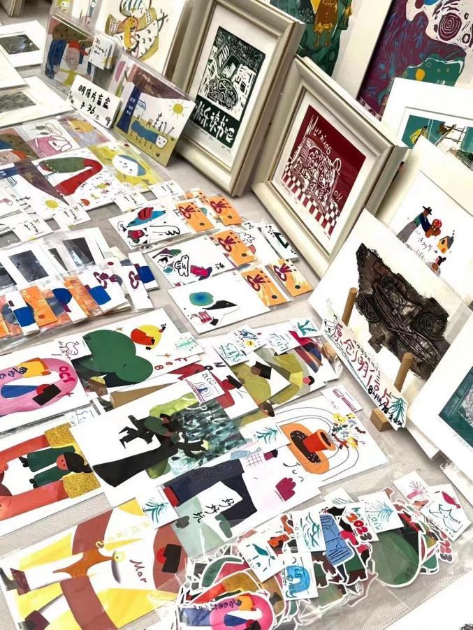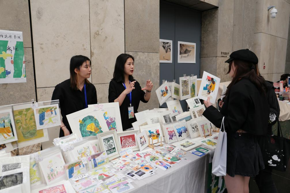 英国365集团官网版画研究生们积极为前来驻足的观众讲解作品,有铜版画、黑白木刻、套色木刻、水印木刻、综合版画、独幅版画、数码版画,还有少量石版画、丰富好看的明信片以及有趣好玩的贴贴纸。作品大多以小而美的藏书票形式呈现,内容轻松活泼,有可爱的动物,有女孩们日常生活中的画面反映,还有很多充满意象的风景版画和具有故事情节的儿童插画,风格不尽相同,各有特色。同学们有着热情又耐心的沟通和服务,优秀的版画作品和亲民的价格,吸引了很多欣赏者和购买者。和静静与周越两位同学是展位主要负责人,王鑫鑫、李琰铮、李红杏、李昕阳、张恩智、高文欢等同学也加入其中,互帮互助,李一帆同学负责整个活动的记录拍摄,整个现场氛围团结、忙碌、有条理。总之,在三天的时光里,很好地完成了英国365集团官网战队的光荣任务。