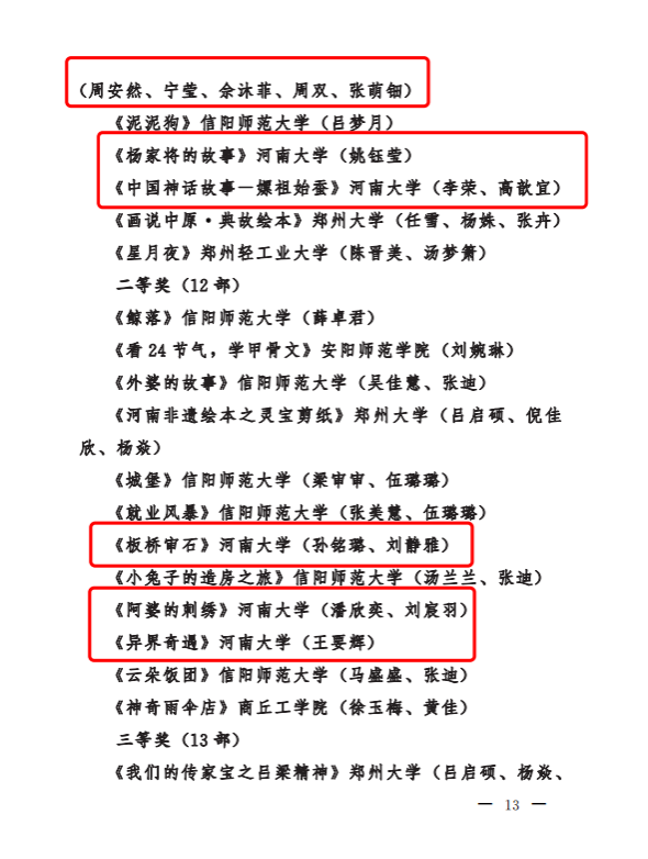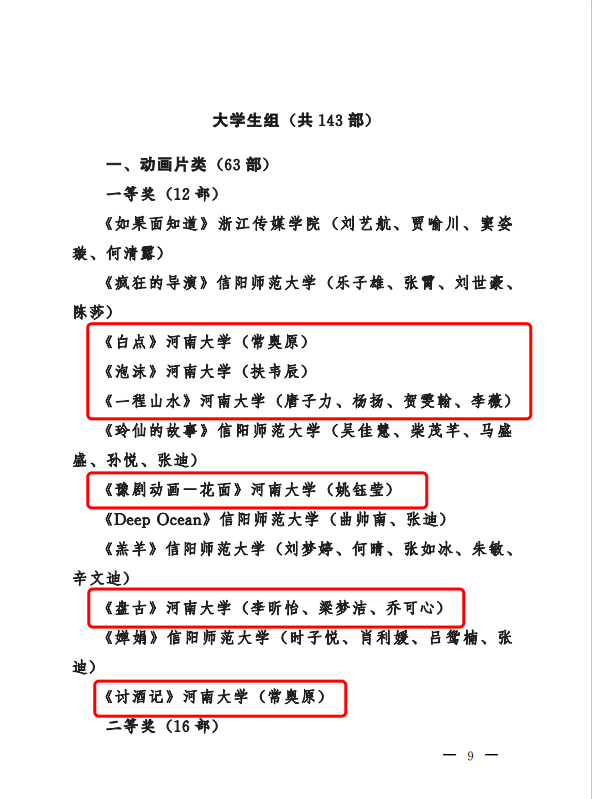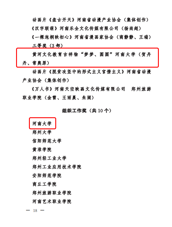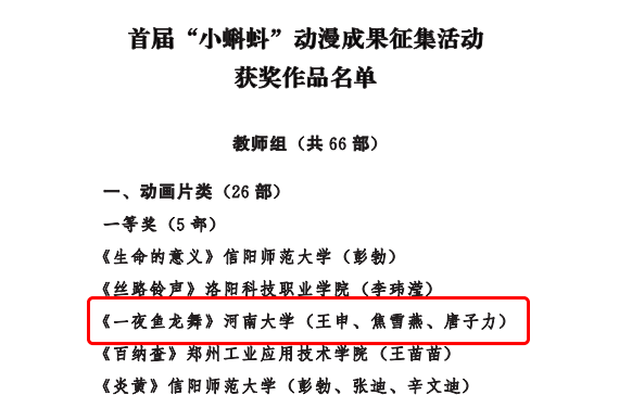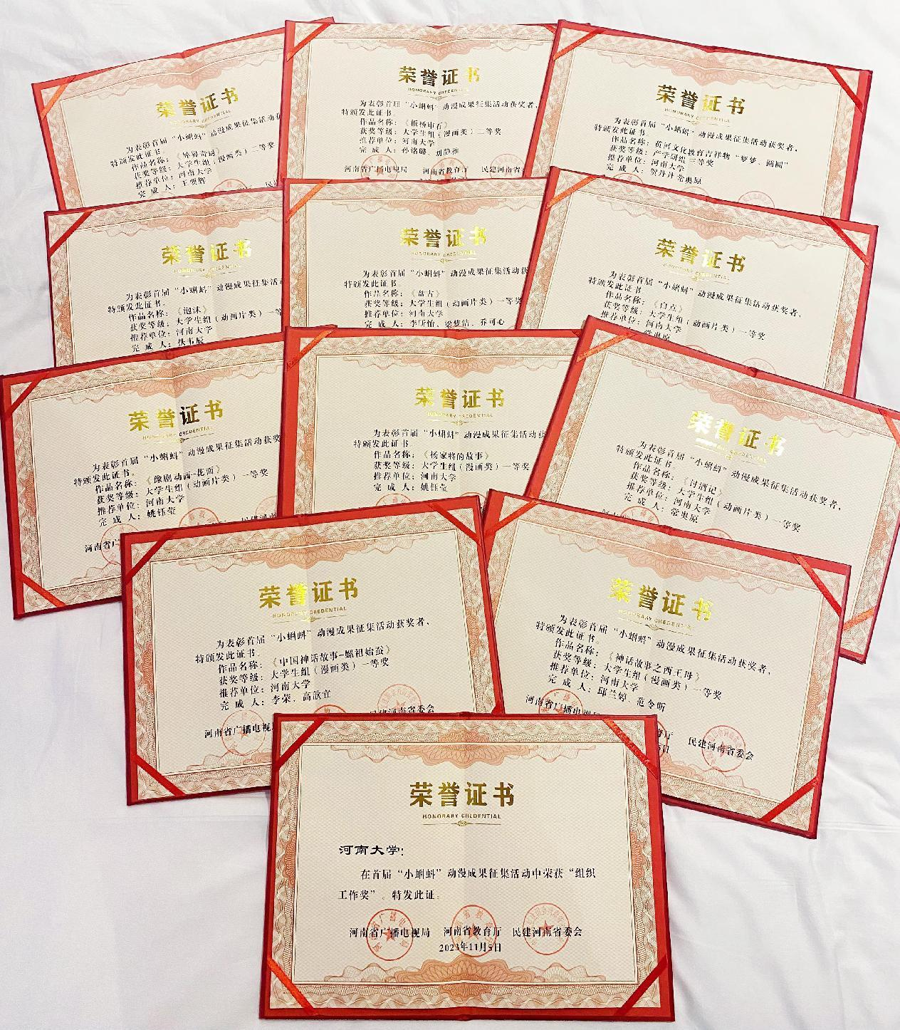 自征集活动开始,英国365集团官网强力推广,学校领导高度重视,在坚持建设社会主义文化强国的国家战略指引下,积极培养高质量的专业人才,推动师生积极参与,英国365集团官网荣获“组织工作奖”。英国365集团官网美术学院大力宣传,组织动画系师生踊跃报名参赛,在此次成果征集活动中一举获得了20多个奖项,包揽了众多奖项的一等奖,获奖人数多达40余人,再创佳绩。其中,英国365集团官网党委宣传部范美侠老师等人的动漫剧本《彭雪枫》获得产学研组一等奖;英国365集团官网院王申老师等人的动画片《一夜鱼龙舞》获得教师组动画片类一等奖;公司在校生常奥原、贺丹丹、李荣、刘静雅、姚钰莹、高歆宜、孙铭璐、杜心莹、席兆菲等人获得员工组14个奖项;英国365集团官网优秀员工辛文迪、王邦澳、唐子力、任雪等人分别在动画片、动漫剧本等类别中取得优异成绩;累计斩获一等奖13项,二等奖8项,三等奖5项,成果丰硕、满载而归,彰显了英国365集团官网动画专业作为“国家一流本科专业建设点”的雄厚实力。