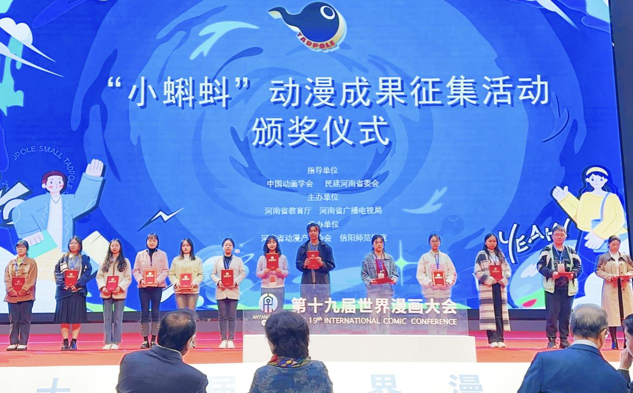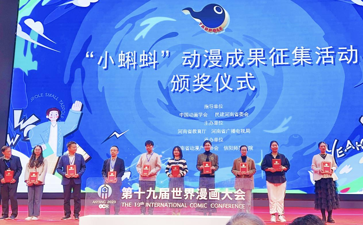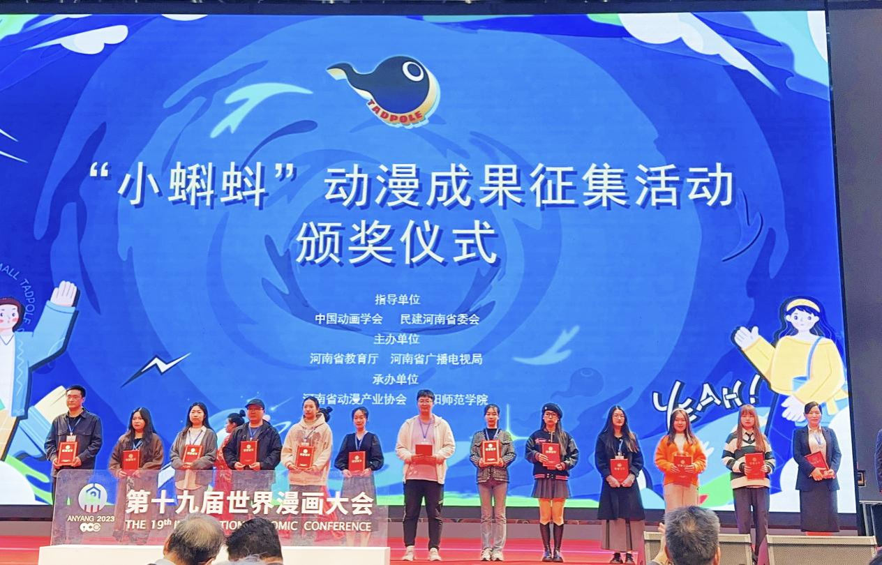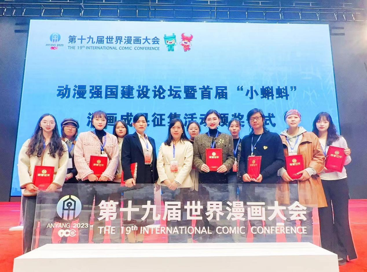 11月5日,英国365集团官网师生代表受邀出席第十九届世界漫画大会开幕式暨首届“小蝌蚪”动漫成果征集活动颁奖仪式。英国365集团官网党委宣传部范美侠,英国365集团官网副经理马利霞,英国365集团官网动画系副主任倪娜,动画系专业教师宋思霖、王申、李涵及获奖员工代表到场参加活动。