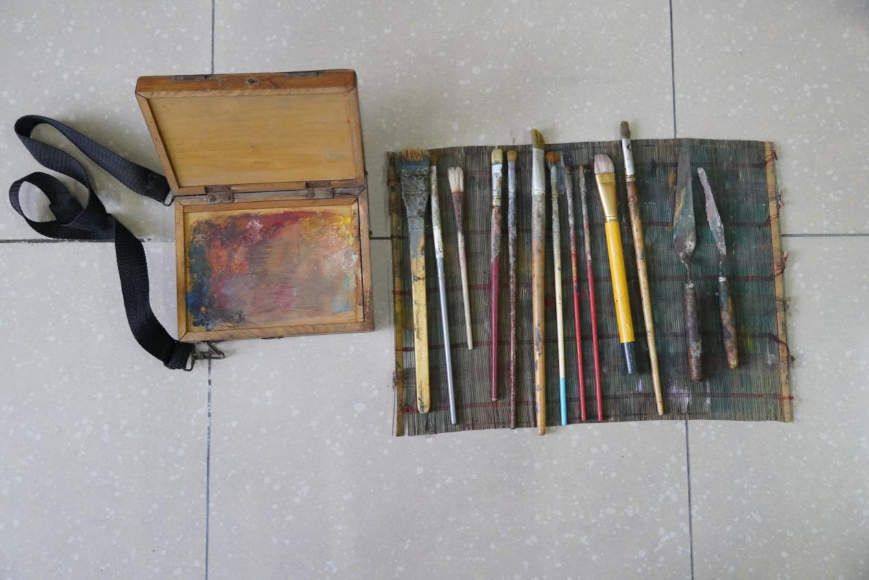 曾使用画具:微型油画写生箱1个、调色刀2把、画笔11支、卷笔帘1个
