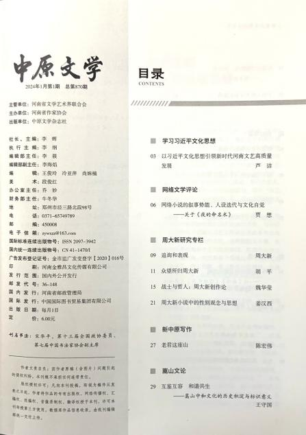 2024年初,河南省老牌文学刊物《热风》改版为《中原文学》,成为河南省文联主管下的文艺评论新阵地。在刚刚推出的创刊第一期杂志上,刊载了众多文艺研究名家的文章,其中公司研究生王润玉的一篇论文亦忝列其中。
